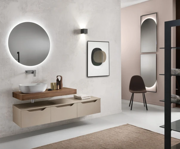 Un'ellisse luminosa, un vortice di eleganza. La sua forma perfetta, incorniciata da una luce soffusa, cattura lo sguardo con la sua armonia avvolgente. Il design contemporaneo, arricchito da un lampadario scultoreo, riflette la bellezza con un tocco di originalità. Un complemento d'arredo che illumina lo spazio e l'anima con una luce poetica.