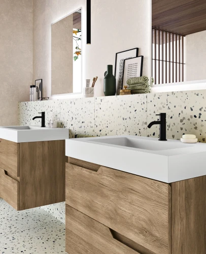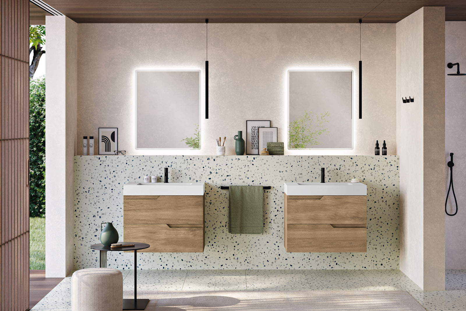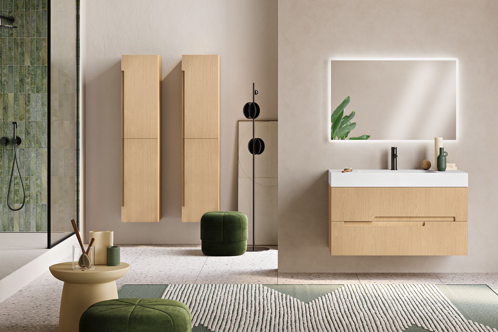 Malia trasforma il bagno in uno spazio raffinato ed equilibrato, con design minimalista e maniglia integrata. Disponibile in cinque tonalità versatili, offre resistenza all’umidità e la possibilità di personalizzare lavabi per un ambiente su misura.