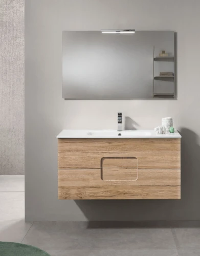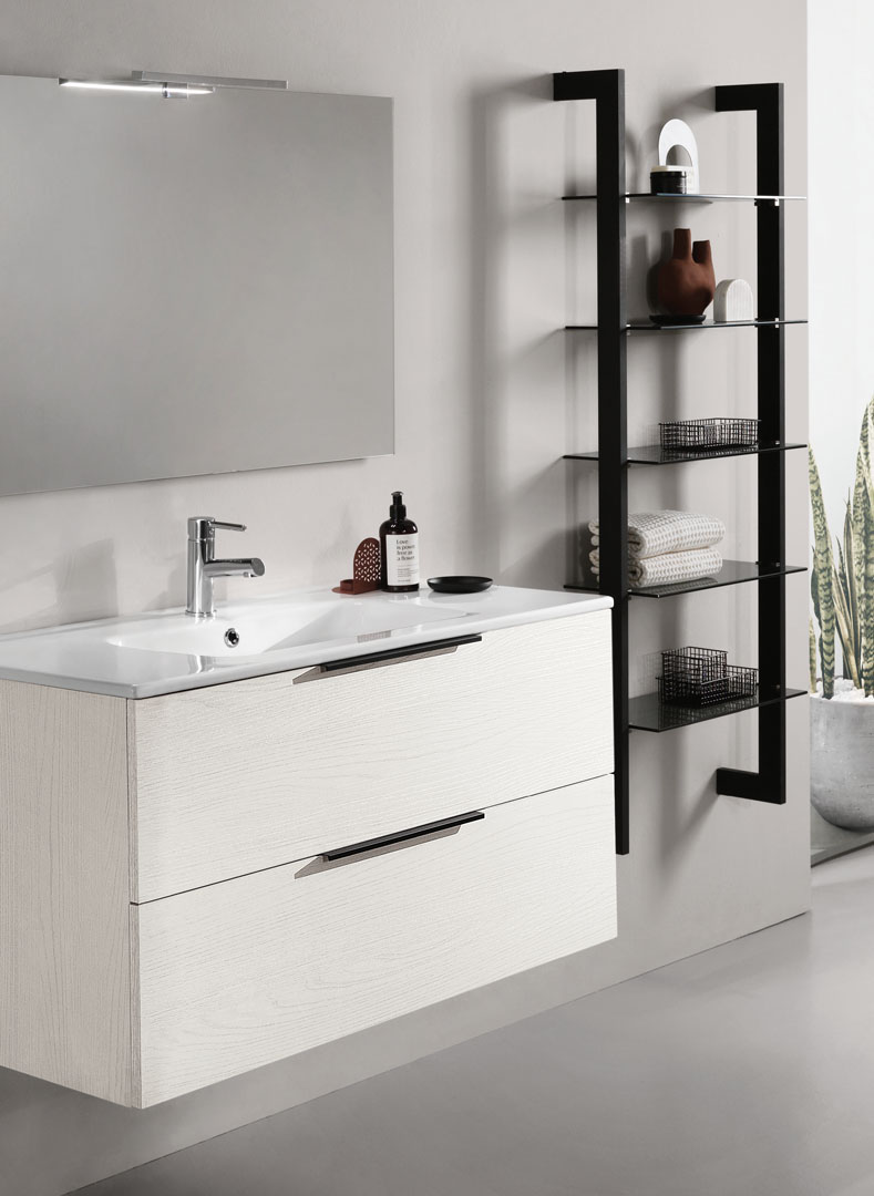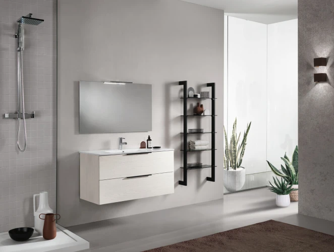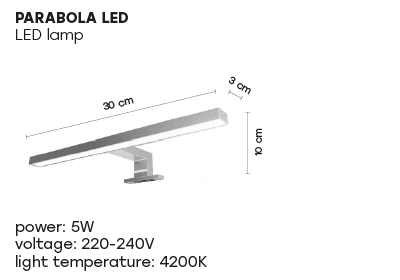 Un'essenziale eleganza rettangolare. La sua forma lineare, illuminata da una luce discreta, cattura lo sguardo con la sua semplicità raffinata. Il design moderno, arricchito dalla funzionalità della luce superiore, riflette la bellezza con un tocco di praticità.