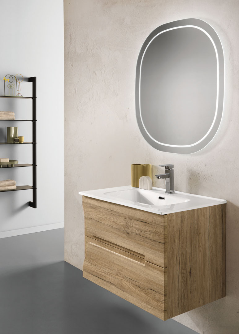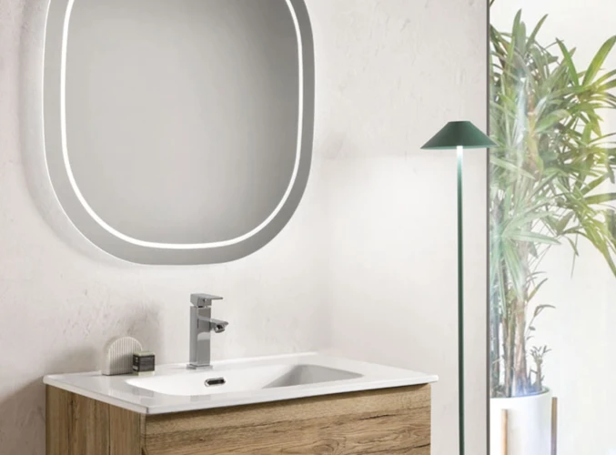 Un'ovale luminoso, un'eco di purezza. La sua forma morbida e avvolgente, incorniciata da una luce delicata, cattura lo sguardo con la sua eleganza senza tempo. Il design minimalista, esaltato dalla retroilluminazione LED, riflette la bellezza con un tocco di modernità. Un complemento d'arredo che illumina lo spazio e l'anima con una luce soffusa.