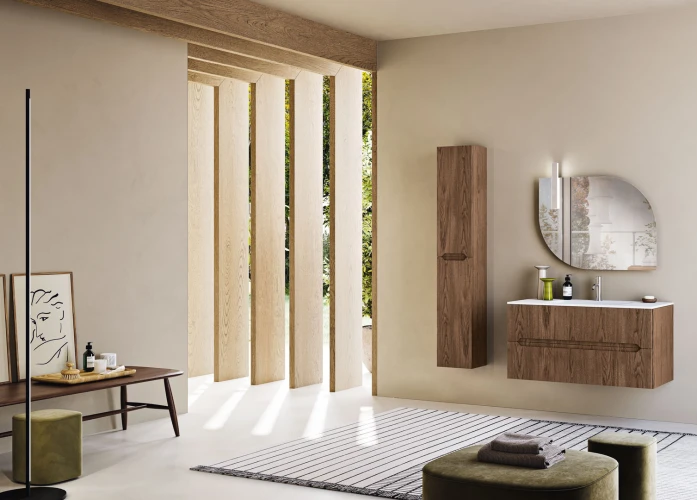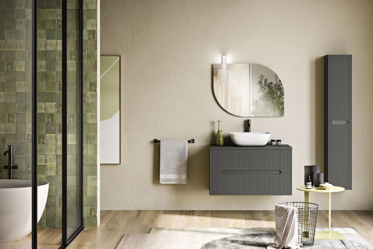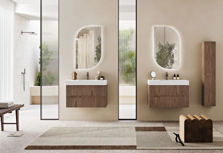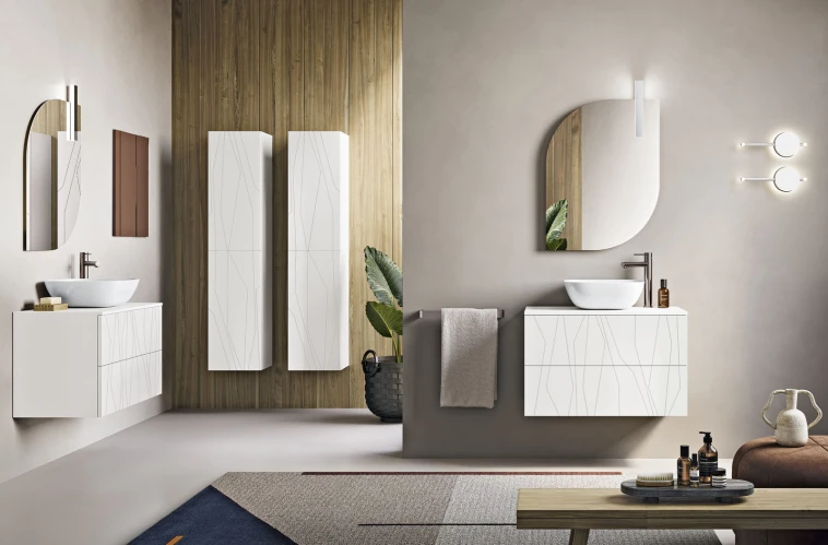 Un'onda di luce e design. Le sue linee morbide e la retroilluminazione avvolgente trasformano lo spazio con un tocco di eleganza fluida, creando un'atmosfera di equilibrio e armonia.